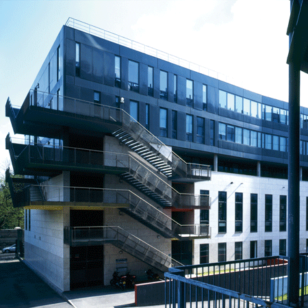 Programme complexe de rénovation, extension et désamiantage. L’ampleur de la tâche a été phénoménale pour ce site qui accueille 45 000 étudiants et 8 000 enseignants, chercheurs et personnel administratif. Le vieux mur a donné le ton. Le nouvel édifice, aligné de biais, creuse la perspective de la rue et glisse une bande jardinée dans l’espace en retrait.