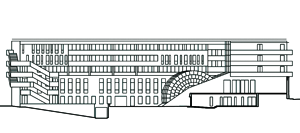 Complex project to remove asbestos, renovate and extend university: a huge undertaking on a site accommodating 45,000 students and 8,000 teaching, research and support staff. The original wall set the tone. To soften the perspective, the new building angles slightly away from the street, and a green planted band slots into the space thus freed.