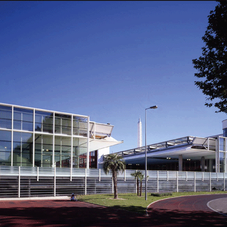 After having renovated the indoor pool, the renovation consisted of creating a modern pool with a movable partition wall and floor at the site of an old pool. This renovation made it possible to divide a 50 meter pool into two 25 meter pools. The transformations were necessary and avoided a kitsch and quickly built appearance. The additions were made to harmonize with the original construction that was completed 70 years prior. The front door, which was originally from a private mansion from the classical age, was used by the first architect in the original construction of the pool and it was conserved in this renovation. This represents a veritable architectural palimpsest.